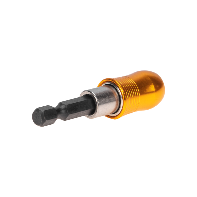 Адаптер для бит с магнитом обеспечивает надежную фиксацию и быструю замену сменных насадок. Применяется при работе с шуруповертами.