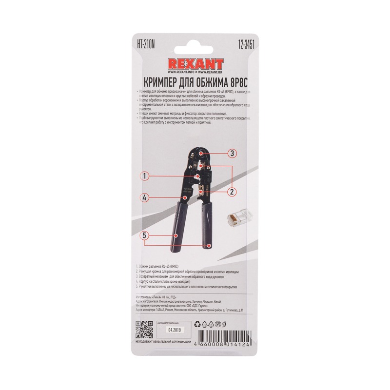 Кримпер HT-210N для обжима 8P8C REXANT