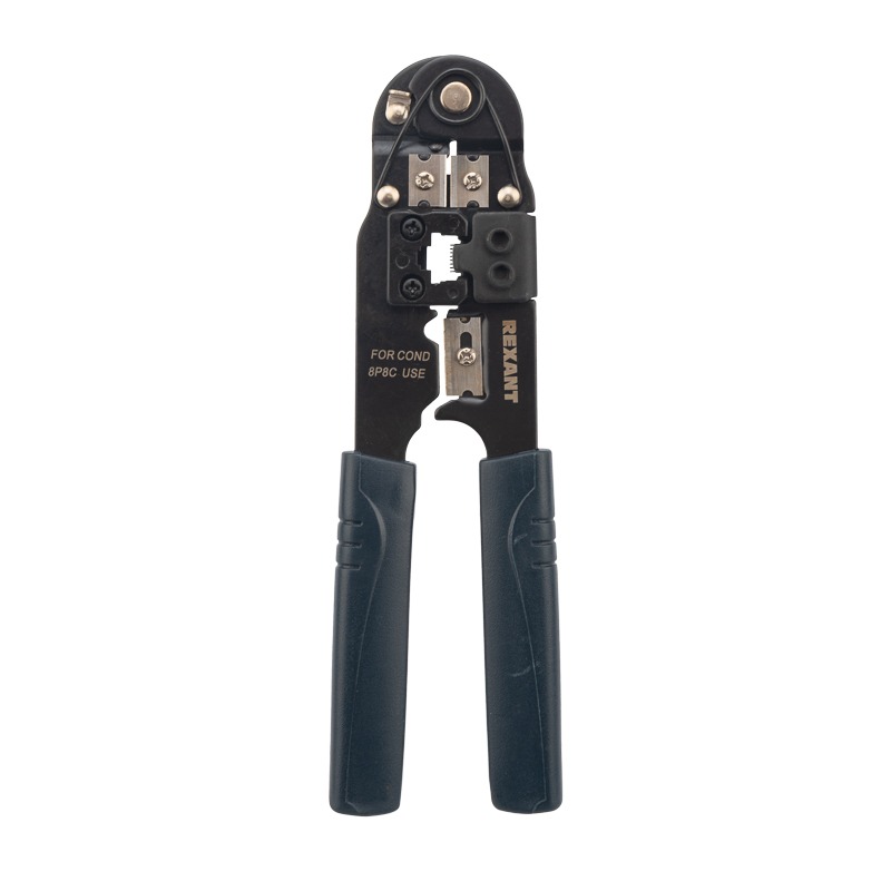 Кримпер REXANT HT-210N — универсальный инструмент для обжима разъемов RJ-45 (8P8C), а также для снятия изоляции и обрезки проводов.