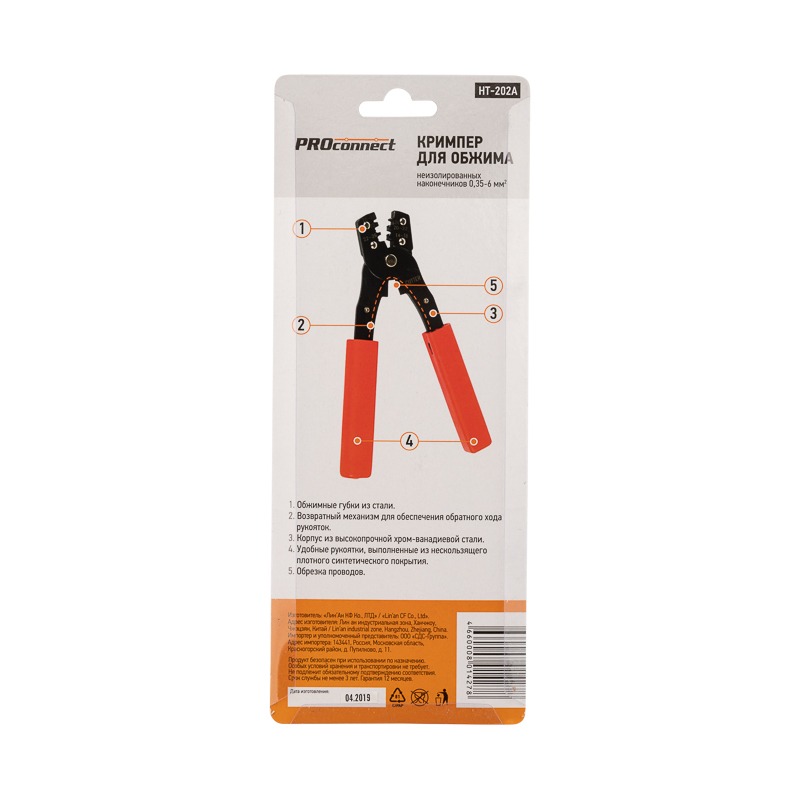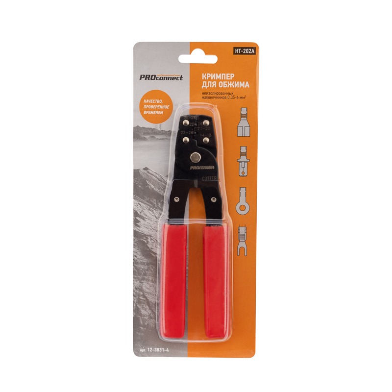 Кримпер PROconnect HT-202A — универсальный инструмент для обжима неизолированных и изолированных клемм с диапазоном обжима 0.35-6.0 мм²