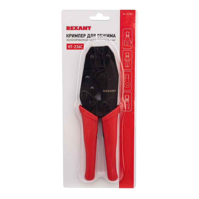 Кримпер REXANT HT-236C – универсальный инструмент для обжима неизолированных клемм с диапазоном 0.5-6.0 мм².