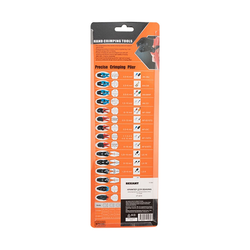Кримпер для обжима REXANT HT-6010 – универсальный инструмент для обжима неизолированных наконечников и гильз с диапазоном сечения 1.5 - 16.0 мм²