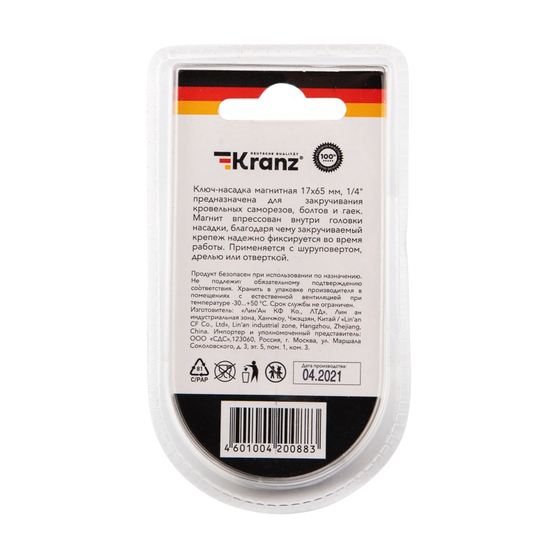Ключ-насадка магнитная 1/4" 17х65 мм (1 шт. /уп. ) Kranz