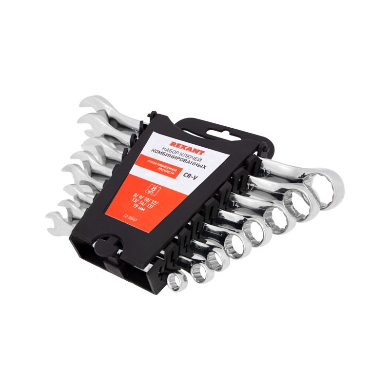 Набор ключей комбинированных (8-19мм), 8 шт, CrV, зеркальное хромирование REXANT