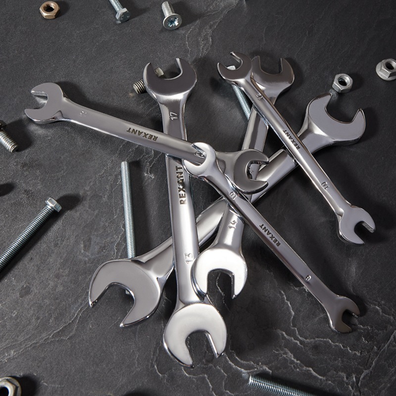 Набор ключей рожковых (8-19мм), 6 шт, CrV, зеркальное хромирование REXANT