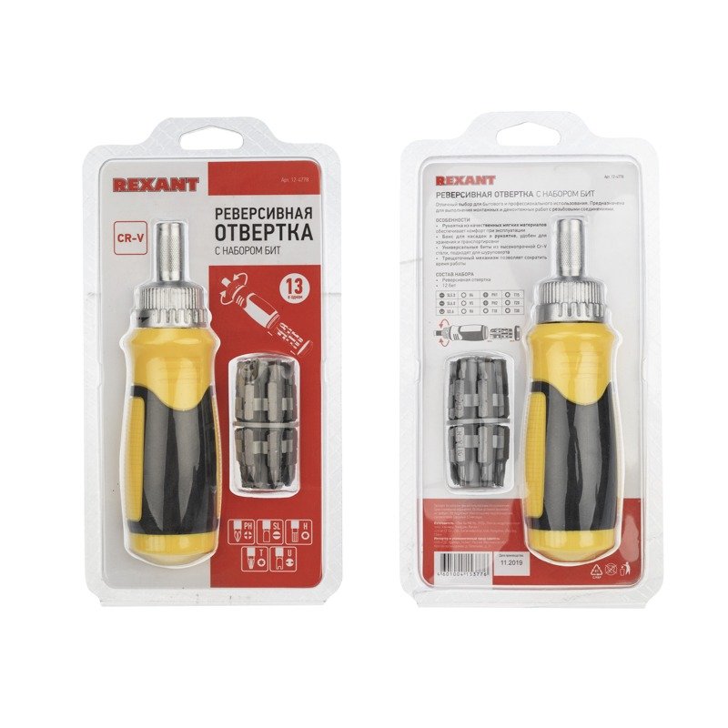 Набор 13 предметов с реверсивной отверткой REXANT