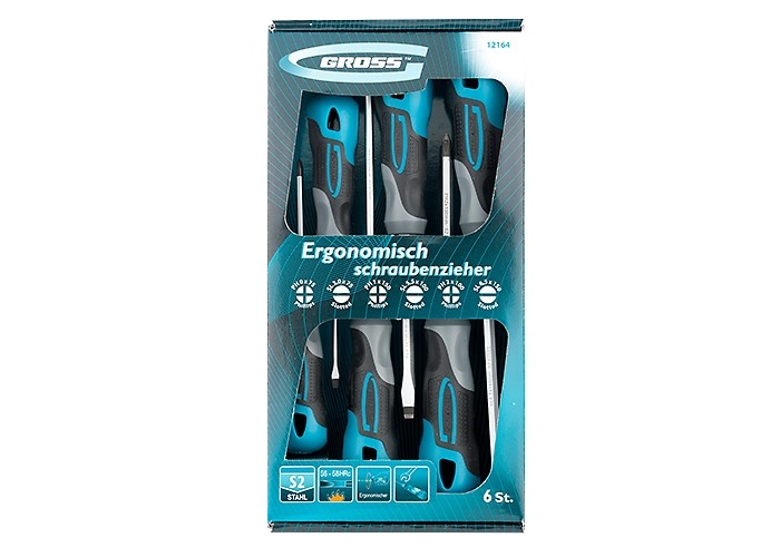 Набор отверток 6 шт, S2, трехкомпонентная рукоятка Gross