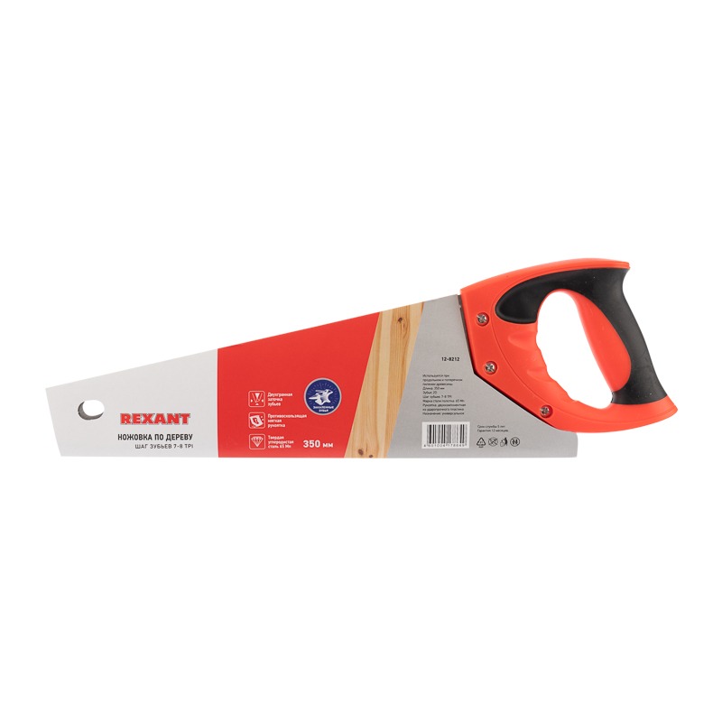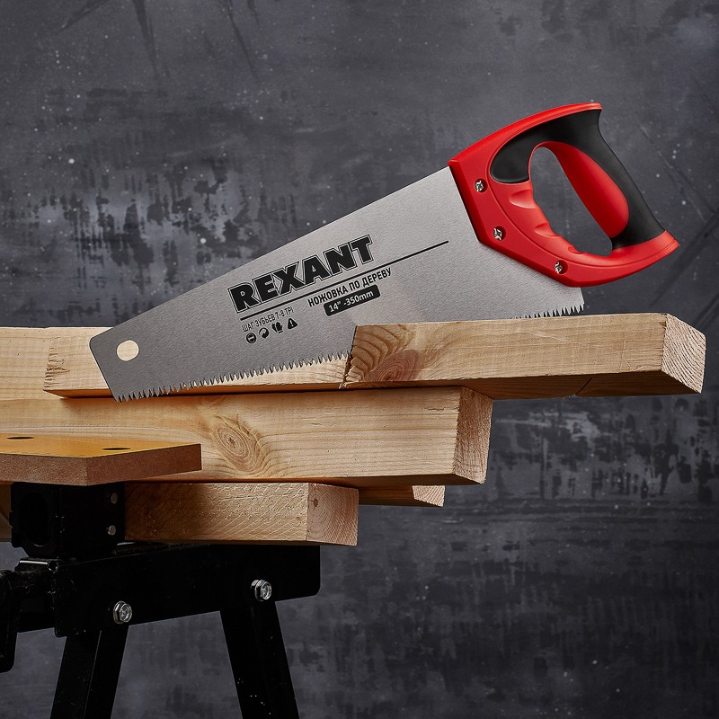 Ножовка REXANT Зубец применяется как в быту, так и в качестве профессионального распилочного инструмента. Подходит для легкого и быстрого распила заготовок из древесины различных пород. Острое лезвие обеспечивает чистый и аккуратный срез.<br> Инструмент оснащен удобной рукоятью для комфортной работы.<br> Полотно инструмента изготовлено из высококачественной стали и имеет закаленный зуб с двухгранной заточкой. Количество зубьев на дюйм – 7-8 TPI.<br> Двухкомпонентная рукоятка изготовлена из ударопрочного обрезиненного пластика и прикреплена к полотну тремя винтами.
