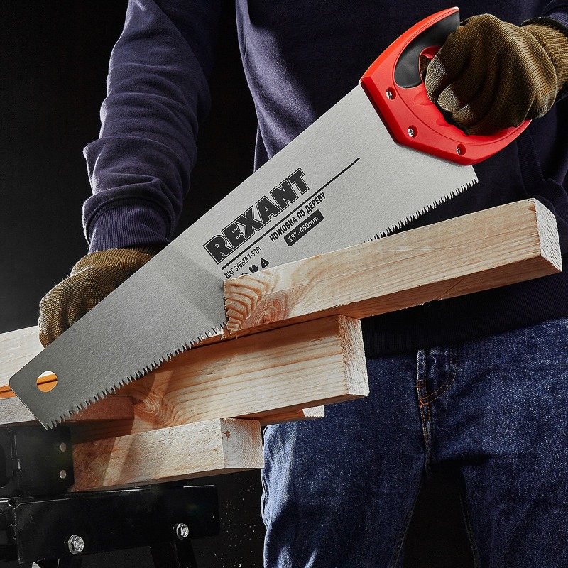 Ножовка по дереву Зубец 450мм, 7-8 TPI, каленый зуб 2D, двухкомпонентная рукоятка REXANT