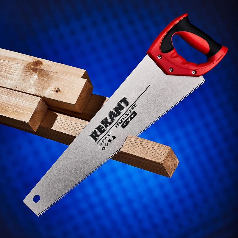 Ножовка REXANT Зубец применяется как в быту, так и в качестве профессионального распилочного инструмента. Подходит для легкого и быстрого распила заготовок из древесины различных пород. Острое лезвие обеспечивает чистый и аккуратный срез.<br> Инструмент оснащен удобной рукоятью для комфортной работы.<br> Полотно инструмента изготовлено из высококачественной стали и имеет закаленный зуб с двухгранной заточкой. Количество зубьев на дюйм – 7-8 TPI.<br> Двухкомпонентная рукоятка изготовлена из ударопрочного обрезиненного пластика и прикреплена к полотну тремя винтами.