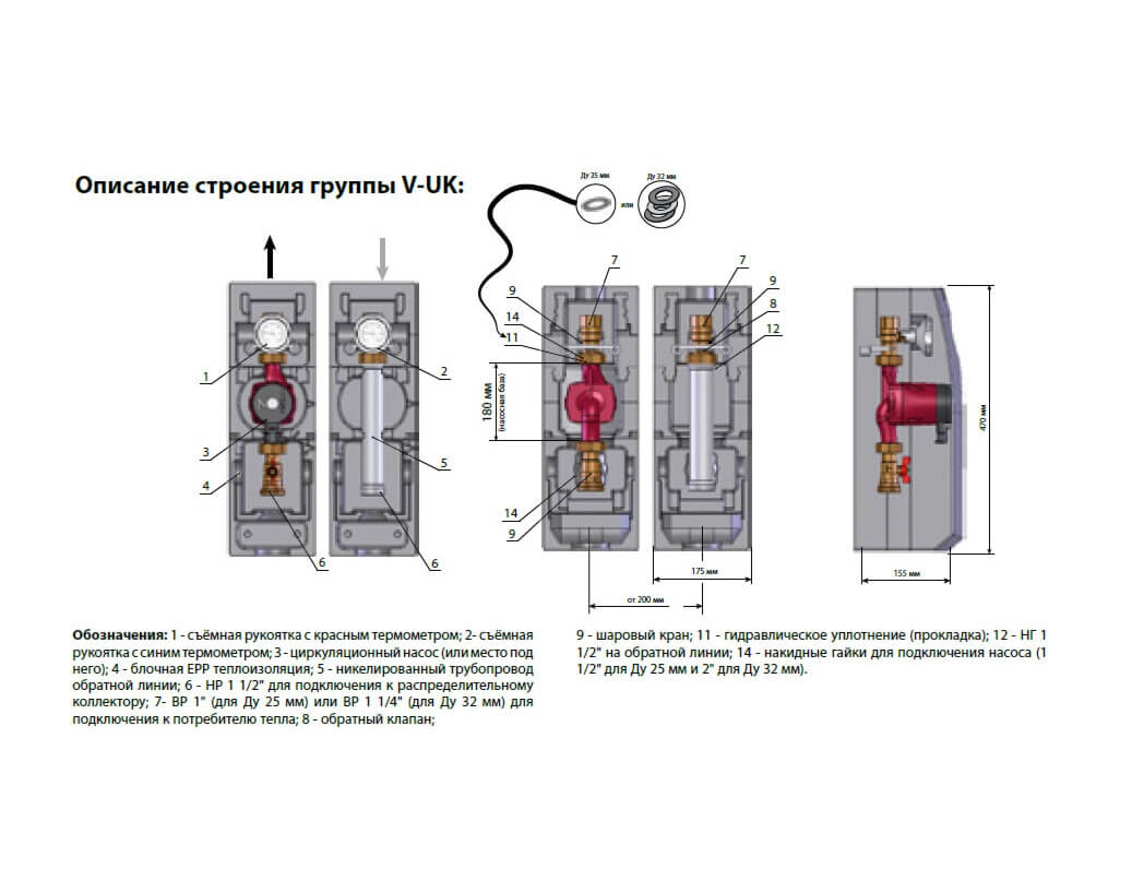 Насосная группа, V-UK, прямая, DN 25 (1"), без насоса, слева (ст.арт. ME 66813 EA)