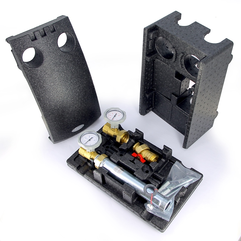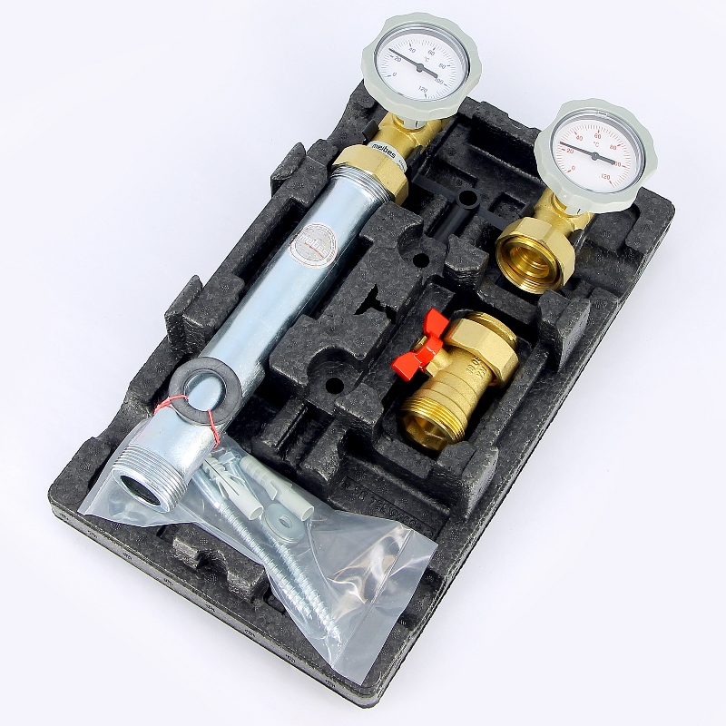 В комплект поставки входят 2 контактных термометра в подающей и обратной линии, 2 двухходовых шаровых крана в подающей и обратной линии, отсечной шаровый кран насоса, встроенный обратный клапан в запорном узле обратной линии и съемная блочная EPP изоляция. Насосная группа изготавливается из стали и латуни. Уплотнения – из EPDM без PTFE асбеста. В качестве теплоносителя применять воду или пропиленгликолевую смесь с концентрацией гликоля до 40%. Группа укомплектована контактными индикаторами температуры в подающей и обратной линиях, что позволяет оценить температурный перепад в контуре. Купить насосную группу UK Meibes без смесителя 1"1/4 без насоса поколение 8 можно в интернет-магазине santehstroy.group по самой выгодной цене с доставкой.