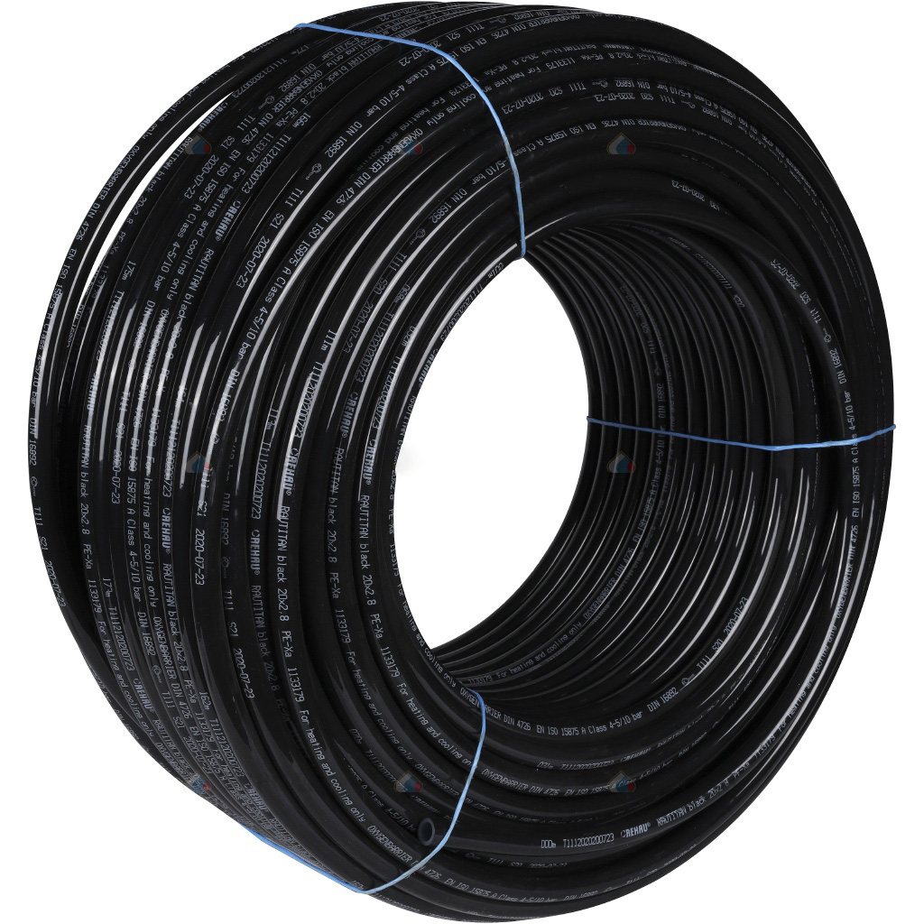 Купить Труба из сшитого полиэтилена Rehau Rautitan черная, для отопления, радиатора, водопровода в частном доме, квартире. Предназначены для использования в системах горячего и холодного водоснабжения. Изготовлена из молекулярно сшитого пероксидным методом полиэтилена.