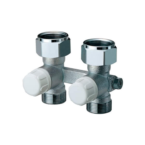Узел нижнего подключения прямой, с метрической резьбой FAR М24х19 и регулируемым байпасом для стальных панельных радиаторов.