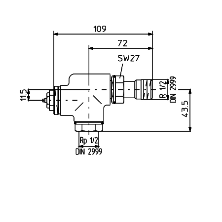 Вентиль "серии Е" Ду 15 1/2" осевой, хромированный