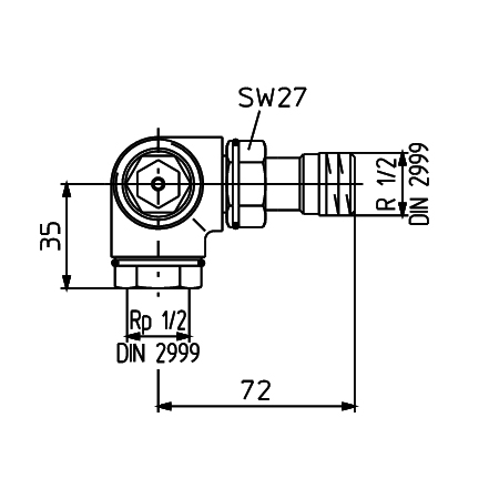 Вентиль, серия E, угловой трехосевой, DN-15, 1/2", 1/2", ВН, белый, левое подключение