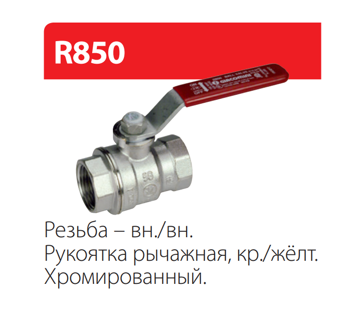 Кран шаровой, R850, 1", ВВ, ручка-рычаг красный, хромированный