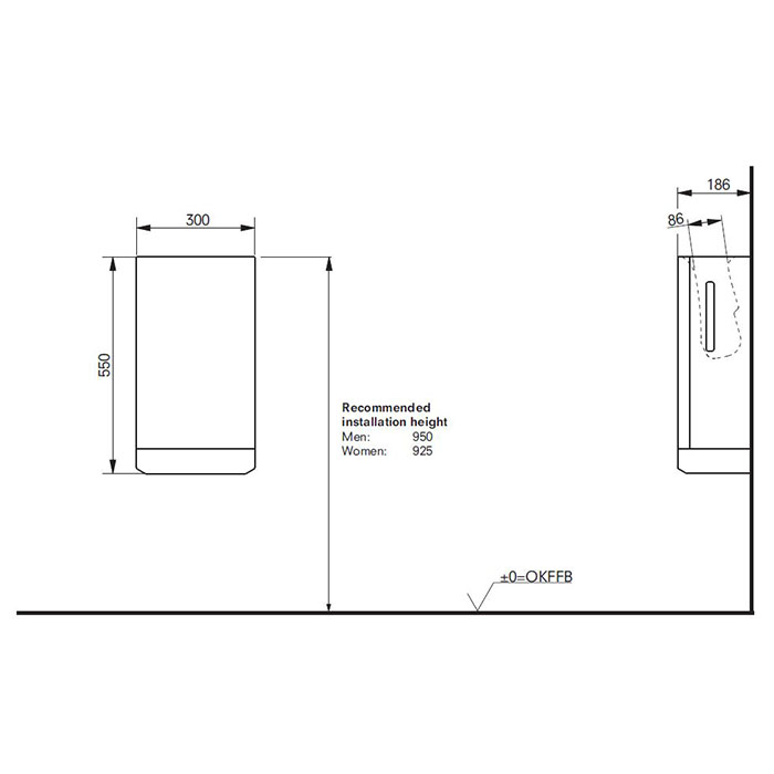 TOTO PUBLIC Сушилка для рук, 300x186x550мм, цвет: белый