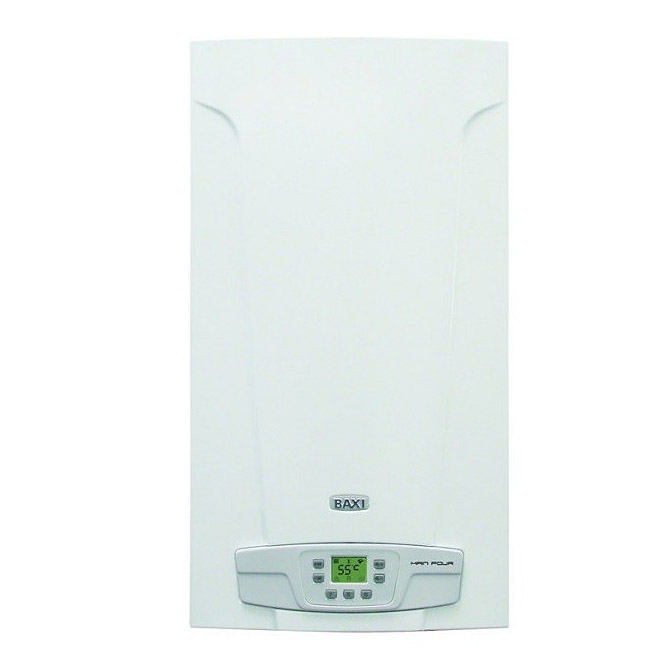 Настенные газовые котлы BAXI ECO Four поставляются в следующем комплекте: турбинный датчик протока горячей воды (расходомер), первичный медный теплообменник, покрытый специальным составом для дополнительной защиты от коррозии, энергосберегающий циркуляционный насос со встроенным автоматическим воздухоотводчиком, манометр, автоматический байпас, постциркуляция насоса, фильтр на входе холодной воды, возможность подключения к солнечным коллекторам.