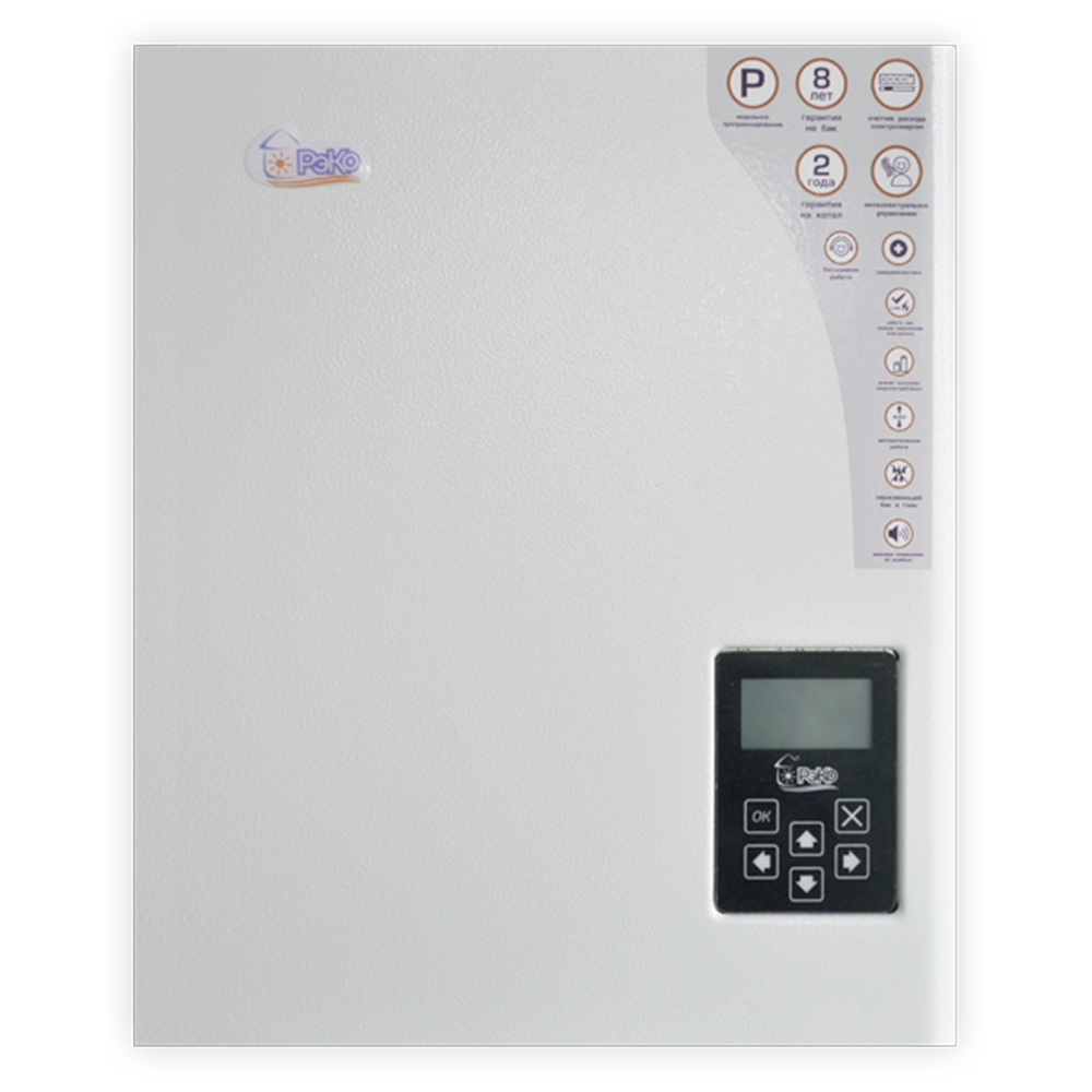 Электрический одноконтурный отопительный котел Российского производства РЭКО от производителя электрокотлов «РусНИТ» предназначенный для создания комфортных условий пребывания в жилых и производственных помещениях.