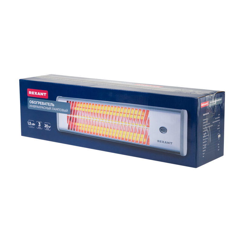 Обогреватель электрический инфракрасный панельный 1,5кВт с кварцевыми лампами в стальном корпусе с регулировкой мощности, серый REXANT