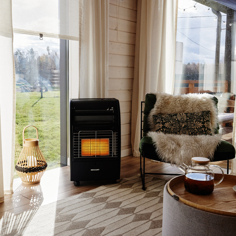 Инфракрасный газовый обогреватель REXANT применяется для обогрева больших помещений. Особенно подходит для обогрева загородных домов, где не предусмотрено центральное отопление.