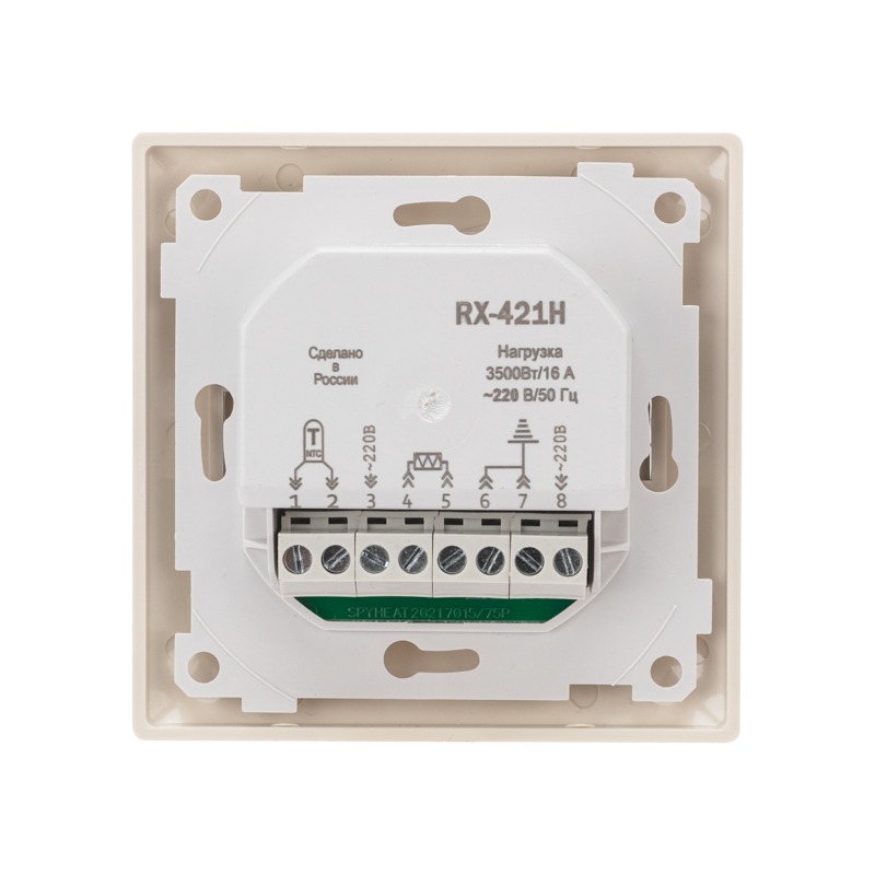 Электронный термостат RX-421H встраиваемый, программируемый по дням недели и часам в сутки, сенсорный экран, корпус бежевый, диапазон регулировок +5...+45 °C, коммутируемый ток контактов 16 A, внешний датчик температуры 10 кОм.