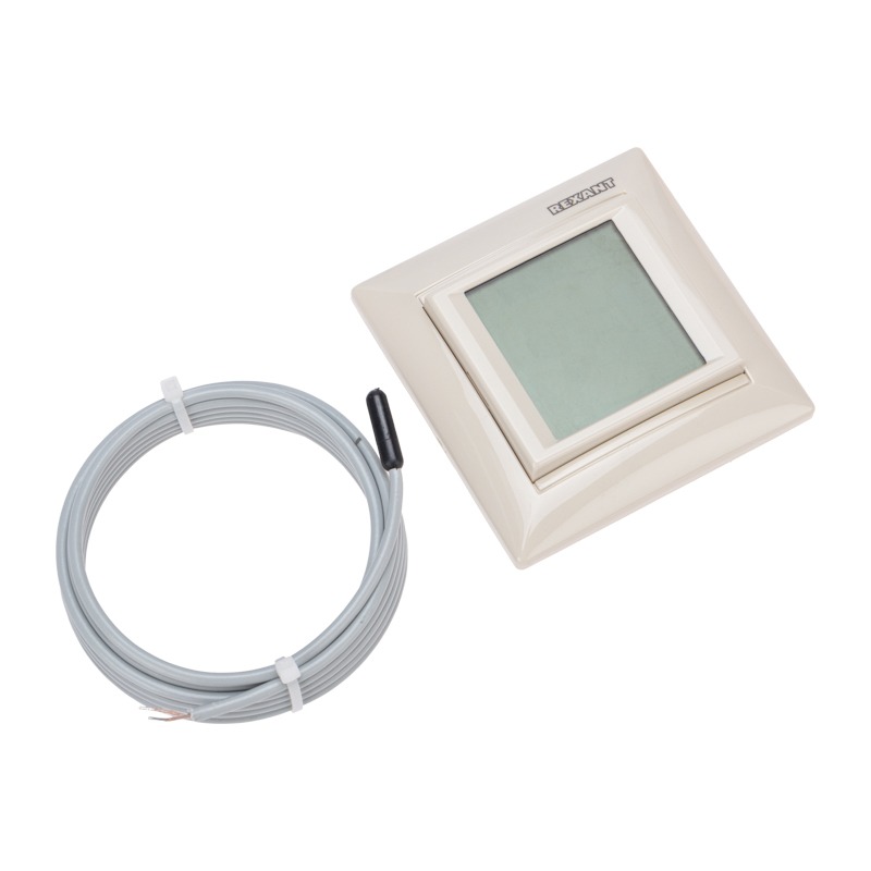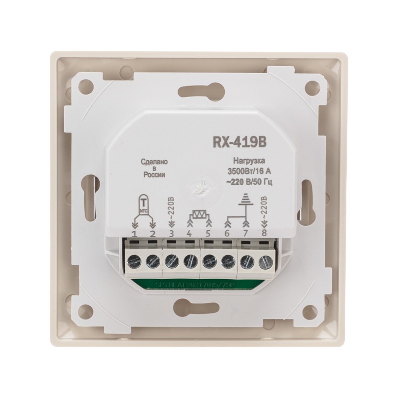 Электронный термостат RX-419B встраиваемый, сенсорный экран, корпус бежевый, диапазон регулировок +5...+45 °C, коммутируемый ток контактов 16 A, внешний датчик температуры 10 кОм.