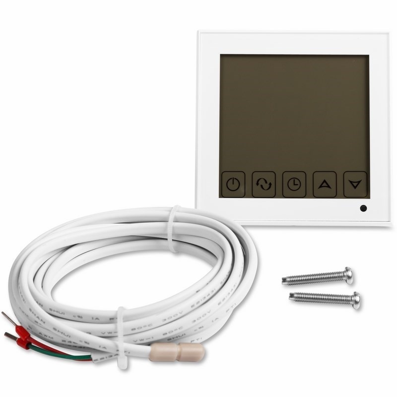 Терморегулятор оснащен большим сенсорным ЖК дисплеем. Есть возможность задавать до 6 временных периодов на каждый день недели, а также выбрать ручной режим управления. С помощью специальных функций двойного контроля и двойной температуры прибор получает данные не только о температуре в помещении, но и о температуре оборудования. Когда температура в системе выше, чем установленная, терморегулятор автоматически остановит нагрев. Такой режим обеспечивает разумное потребление ресурсов и продлевает срок службы системы отопления.