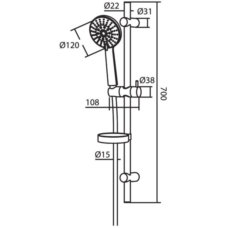 914100000 Palace One душевой комплект: ручной душ d - 120 мм, 5 функций, штанга, мыльница, шт