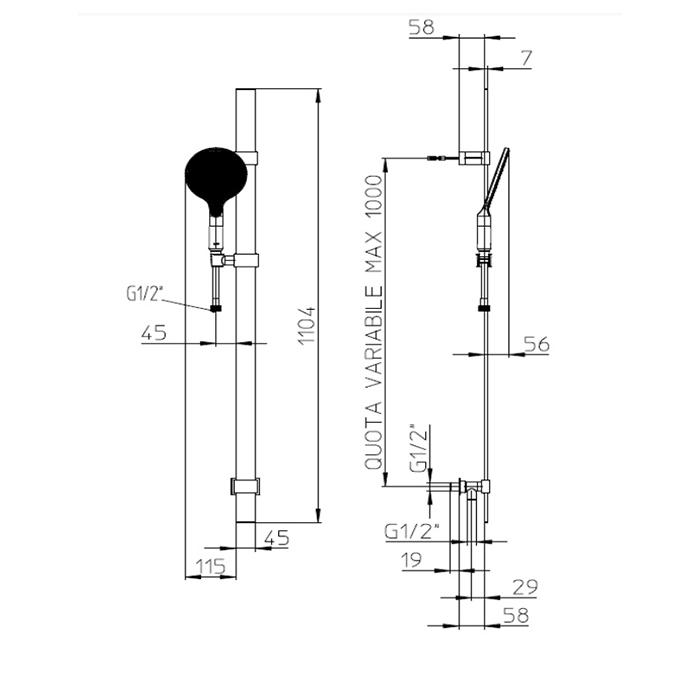 - Регулируемые настенные опоры (максимальное межосевое расстояние 100 см).