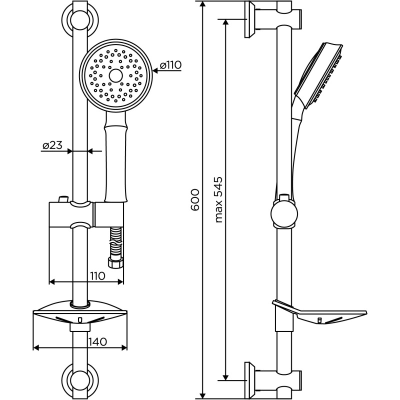 D0180000 Classic душевой комплект, ручной душ 1 функция, стойка 600 мм, шланг 175 мм