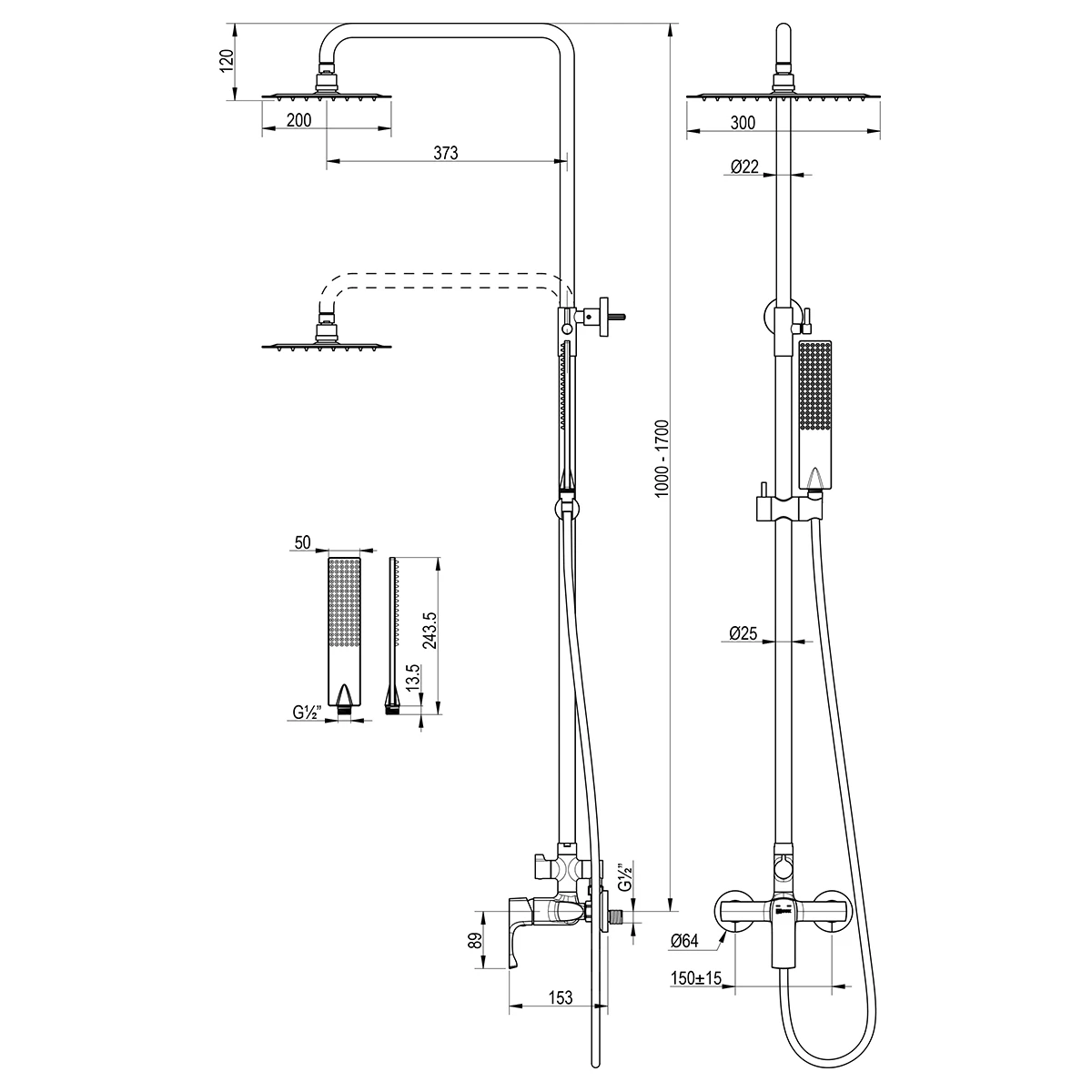 <span><p>Серия URSUS.</p><p>Комплектация:</p><ul><li>Керамический картридж Sedal® 35 мм</li><li>2-позиционный картриджный переключатель (угол поворота - 180⁰)</li><li>Аксессуары в комплекте (верхняя душевая лейка «Тропический дождь 200x300 мм,1-функциональная лейка 68x272 мм, регулируемое по высоте крепление для лейки, душевой шланг 1,5 м)<li>Присоединительная группа для настенного крепления ½”</li><li>Металлическая рукоятка</li></span>