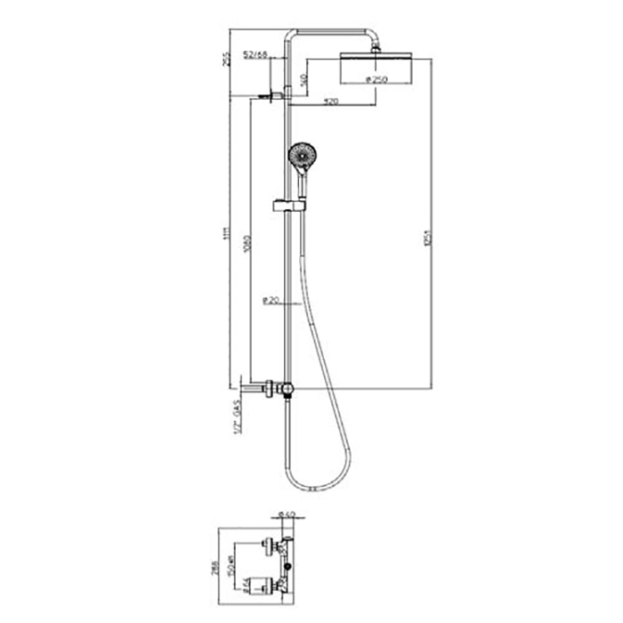 BOSSINI Душевая стойка с однорычажным смесителем, верхний душ из ABS Ø250 мм., ручной душ с 3 режимами, цвет хром (СПЕЦЦЕНА со склада!)