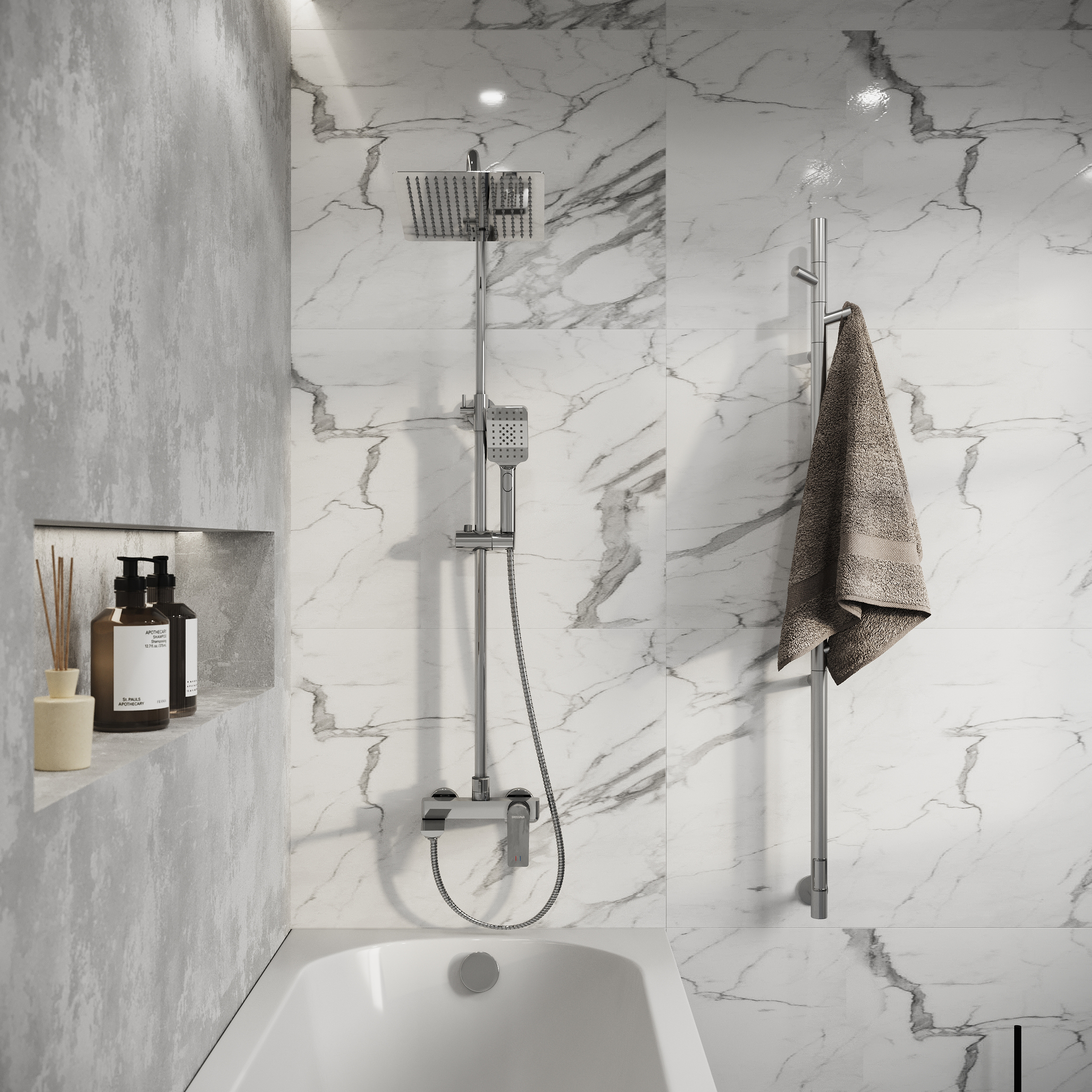 Эта душевая стойка станет стильным и функциональным дополнением вашей ванной комнаты, даря вам ощущение комфорта и уюта.