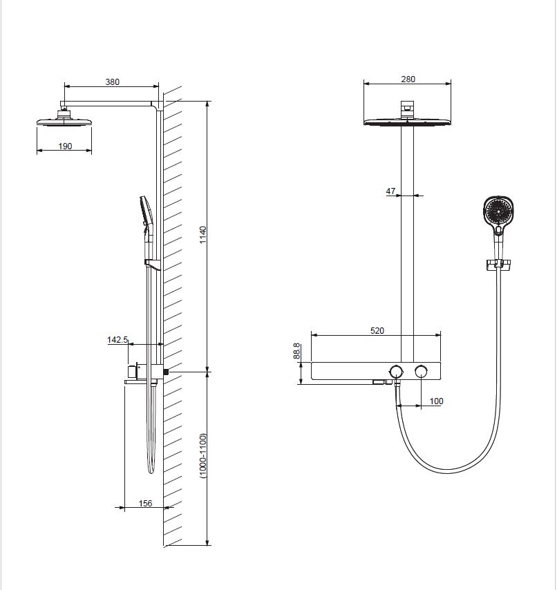 Душевая стойка Inspire VSFS-3I13TGM термостатическая, вороненая сталь