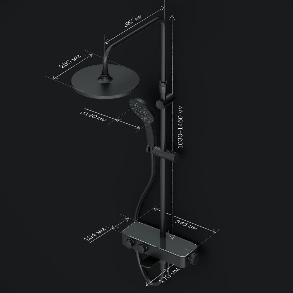 Продукт оснащен термостатическим смесителем для поддержания неизменной температуры воды. Верхняя часть смесителя выполнена из глянцевого стекла и является интегрированной полочкой для нужных мелочей при приёме душа.