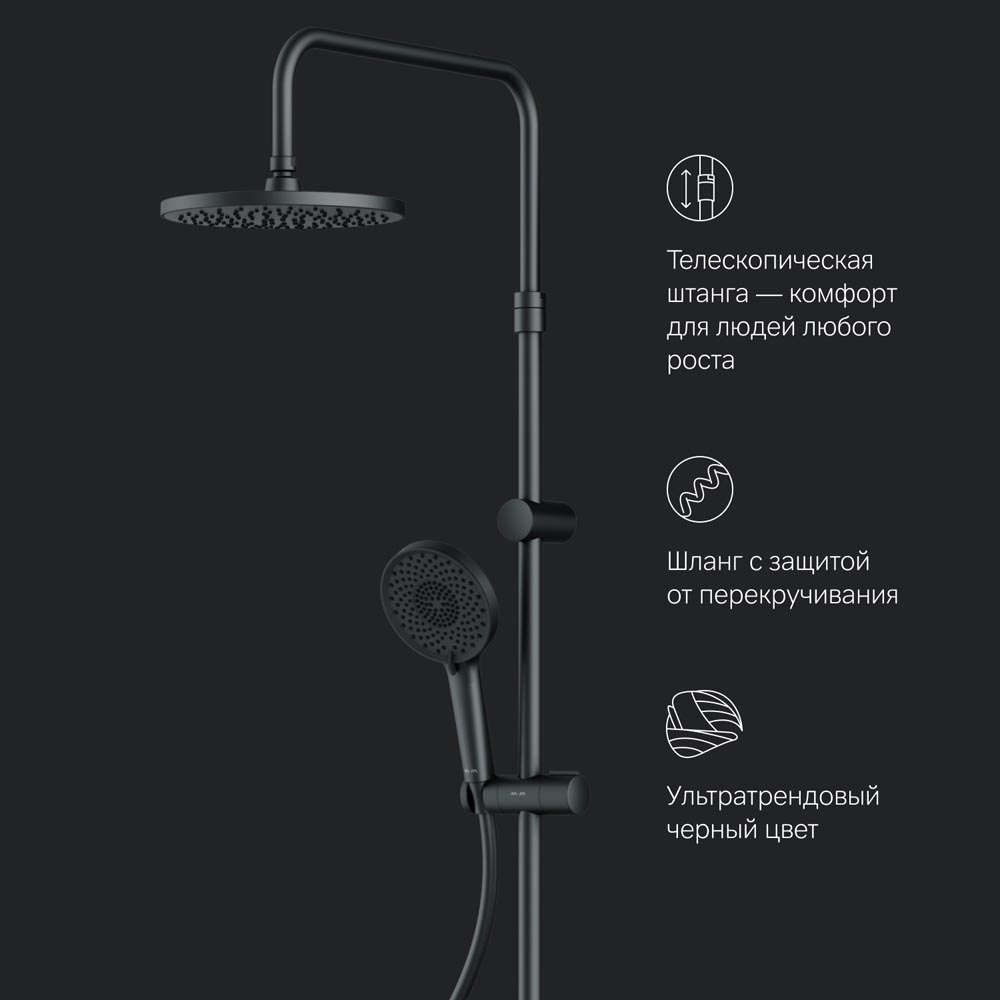 F0785A722 X-Joy, душ.система: см-ль-полка д/ванны/душа, душ.штанга, верхн. душ 220мм, ручн.душ, чер