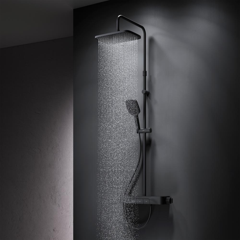 F078F222 Func, душ. система: см-ль-полка д/душа с ТМС: душ.штанга, верхн. душ квадр., ручн.душ, черн