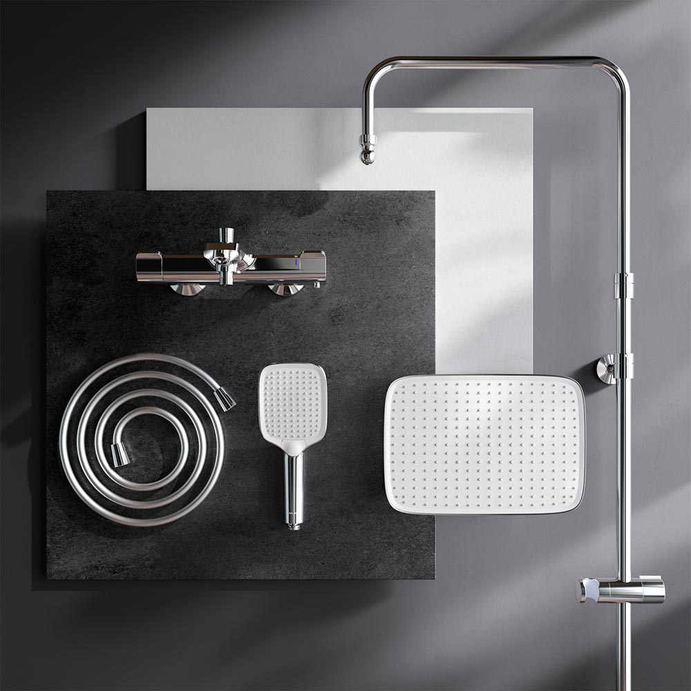F078F500 Func, душ. система: см-ль д/ванны/душа с ТМС, душ.штанга, верхн. душ квадр., ручн.душ, хром