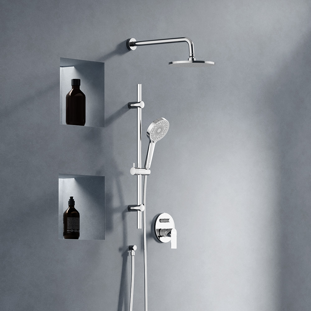 Встраиваемая душевая система из коллекции Apollo станет центром притяжения ванной комнаты. Тонкие линии и четкие грани в сочетании с массивными формами создают исключительную коллаборацию стиля.