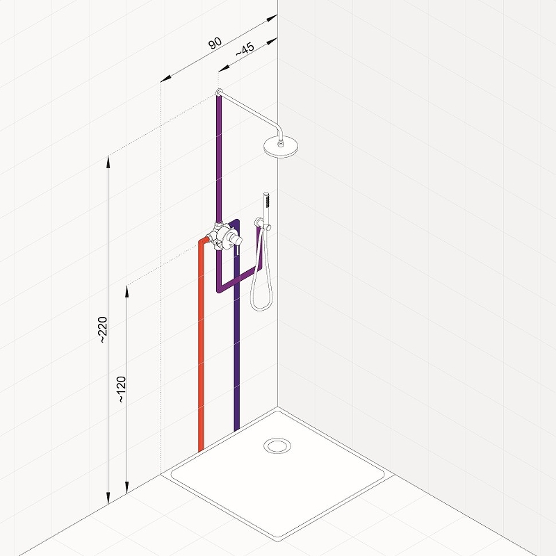 - Диапазон регулировки верхнего душа: 10 градусов.