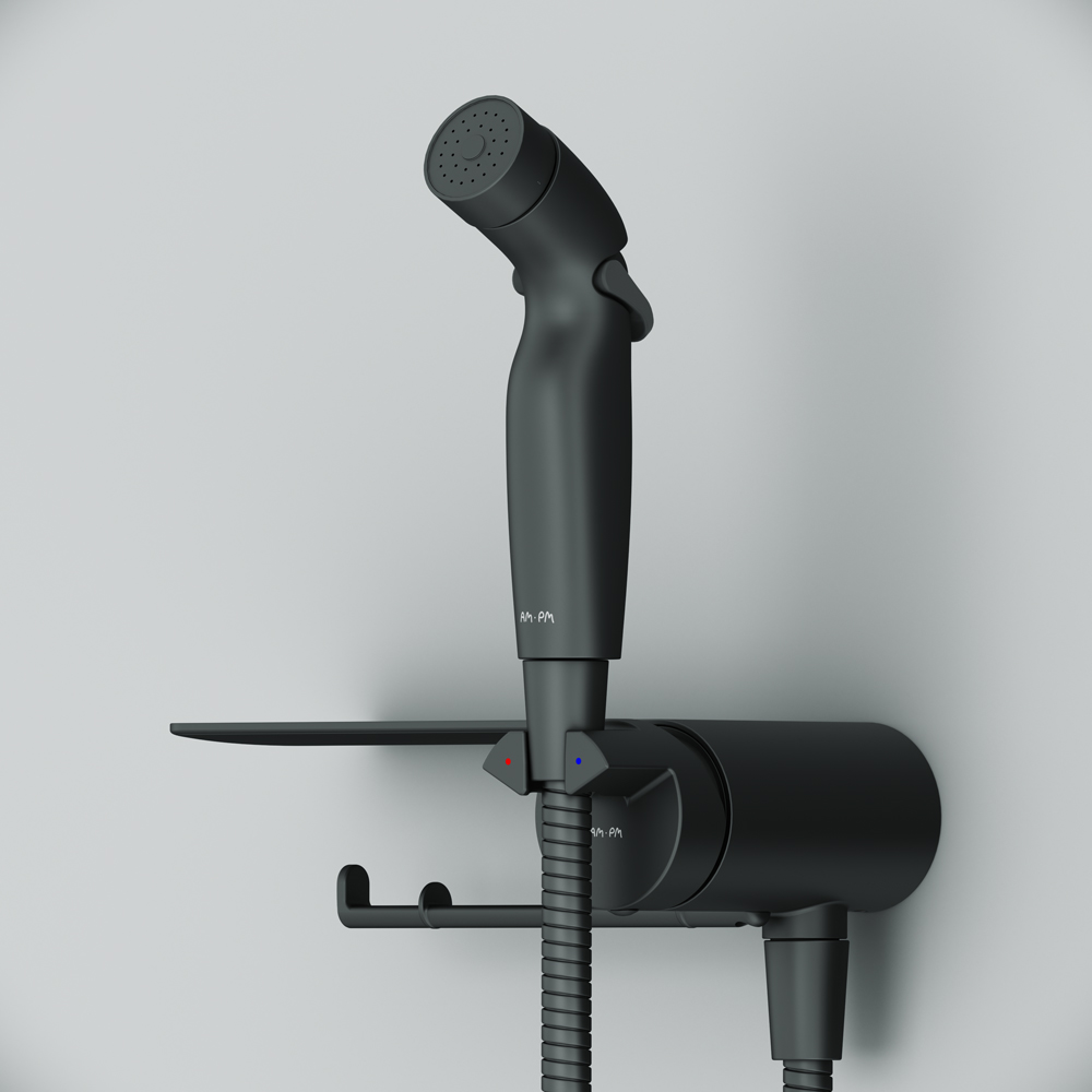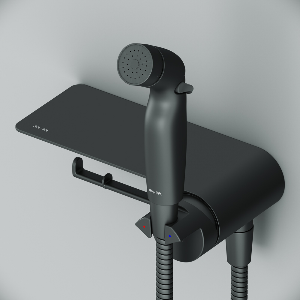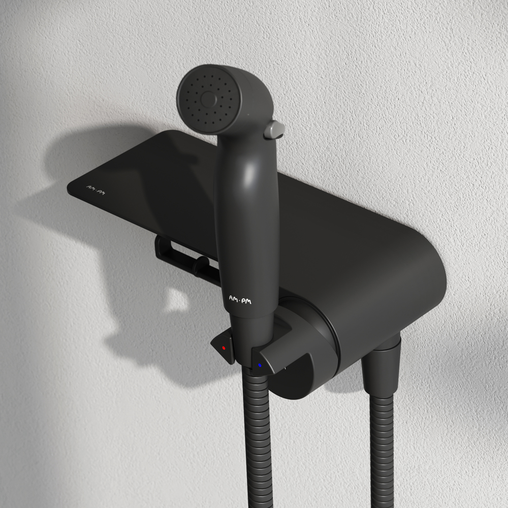 F0H8F922 Func, гигиенический набор со смесителем для душа с полкой, черный, шт.
