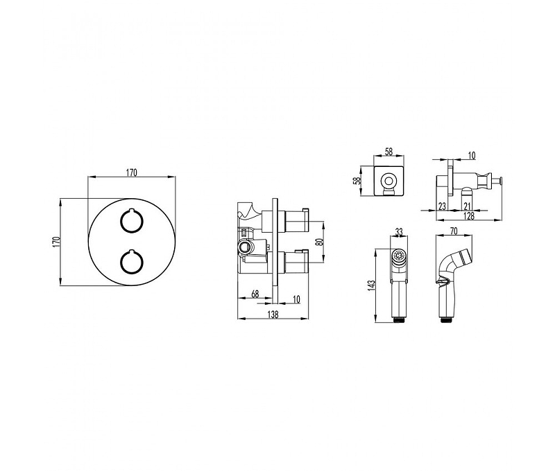 - Аксессуары в комплекте: лейка для биде с регулятором напора воды, шланг 1,2 м с функцией вращения лейки без перекручивания