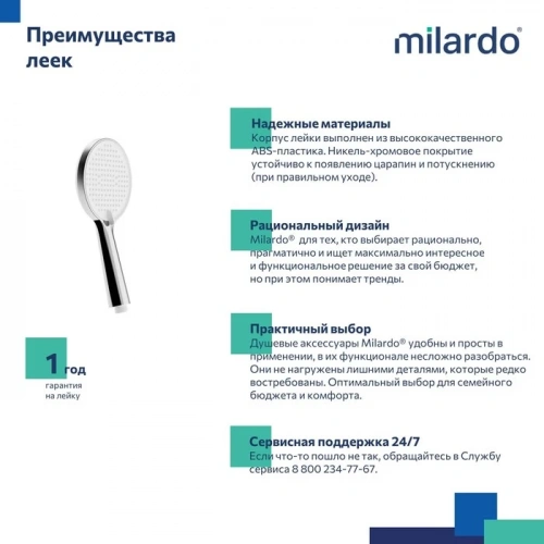 ● Гарантия на душевые лейки Milardo® – 1 год.