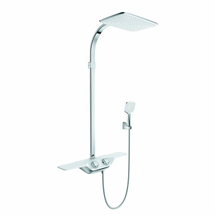 Душевая стойка, Kludi, COCKPIT Discovery, с полкой 550 мм, смеситель-в комплекте, тип открывания воды-вентильный, рукоятка выбора температуры с ограничителем горячей воды при 40 °C, тип регулирования воды-термостатический картридж, верхний душ-есть FRESHL
