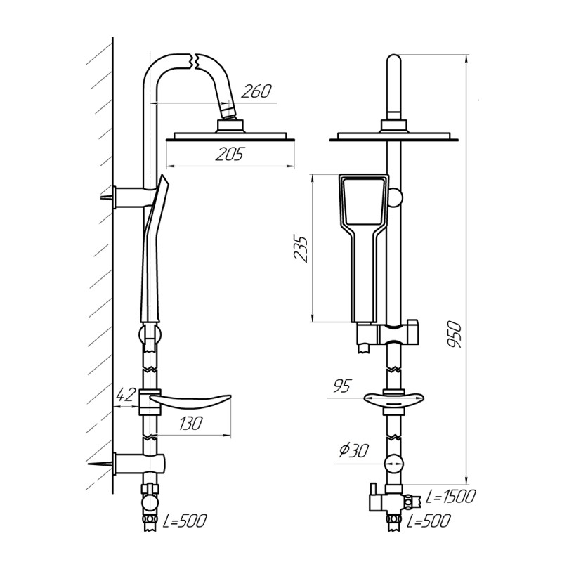 Душевой гарнитур Сантаком. Производство: Россия. Поставляется без смесителя. Подходит для любого смесителя для ванны или душа с диаметром подключения 1/2".