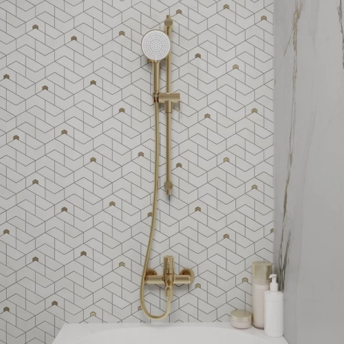 Душевая стойка Ray в красивом оттенке матового золота функциональна, практична и будет гармонично сочетаться с дизайнерскими решениями в классическом и неоклассическом стиле. Может быть установлена и над ванной, и в зоне душевого ограждения. Держатель-слайдер легко перемещается вверх-вниз по стойке, позволяя отрегулировать положение лейки и высоту подачи воды – индивидуально для каждого члена семьи.