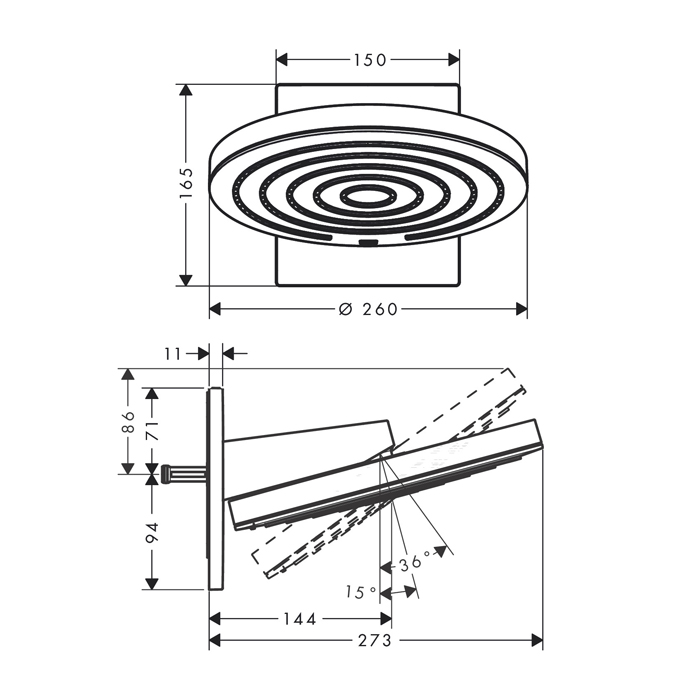 HANSGROHE PULSIFY Верхний душ Ø260 мм., с настенным креплением, 2 режима, внешняя часть, цвет хром/графит