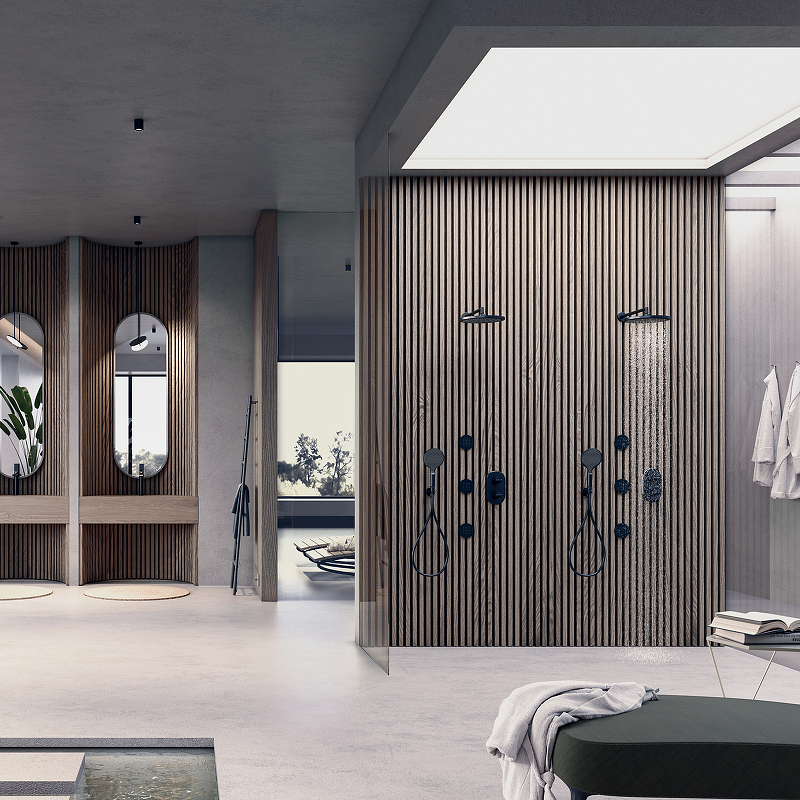 BOSSINI APICE Верхний душ Ø280 мм., с настенным держателем 380 мм., цвет черный матовый
